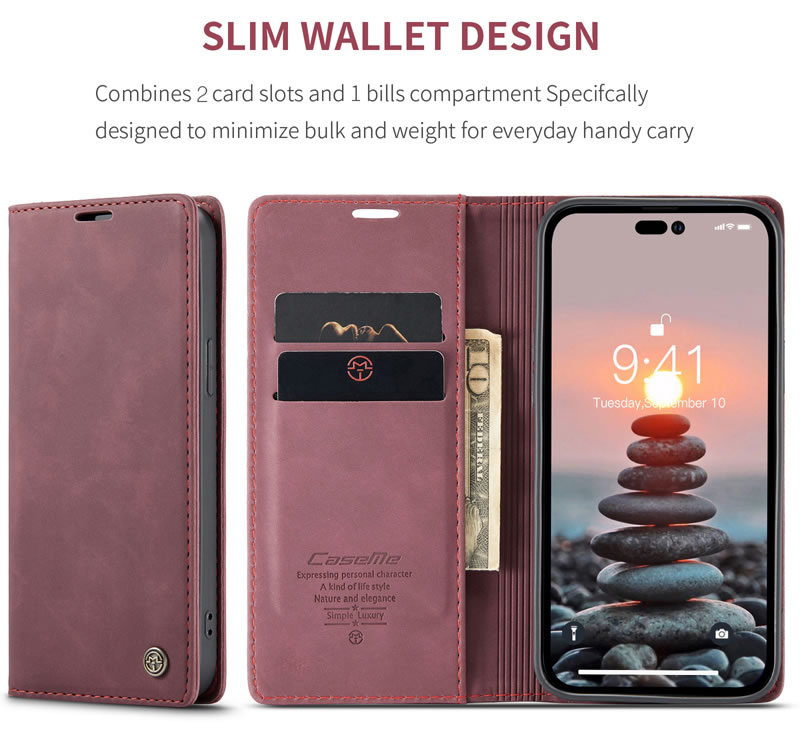 All Iphone Series CaseMe Soft Slim Folio Flip PU Leather Wallet Case with 2 Cards Slot