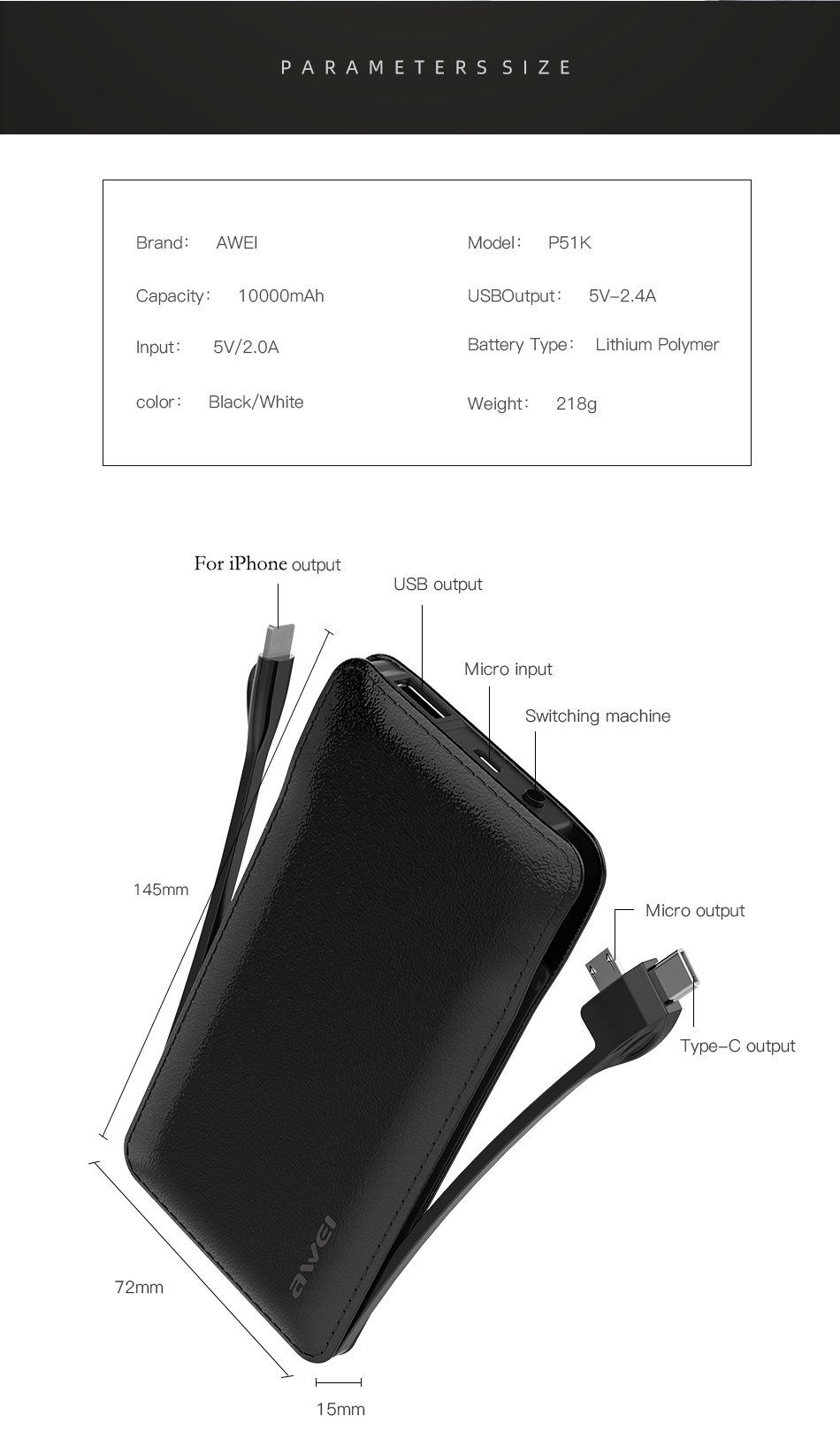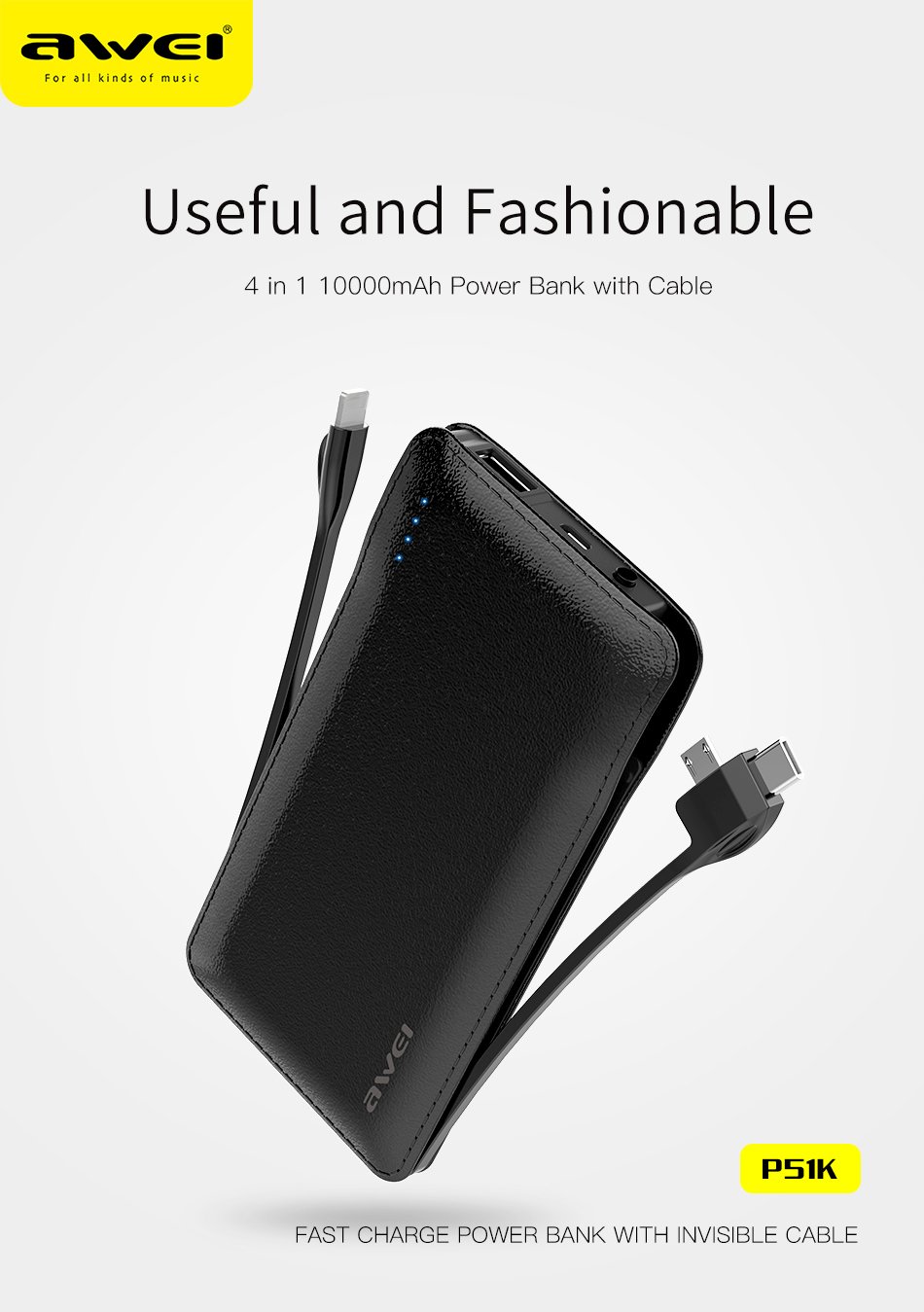 Awei P51K 10,000mAh Fast Charging Portable Power Bank