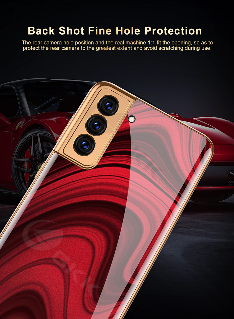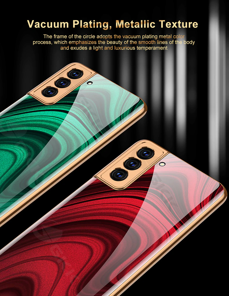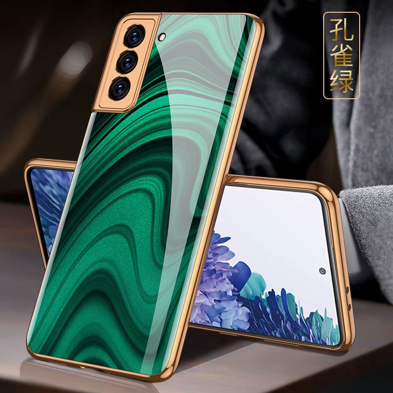Luxury Gold Plated Marble Tempered Glass Case for Samsung Galaxy S21 Plus