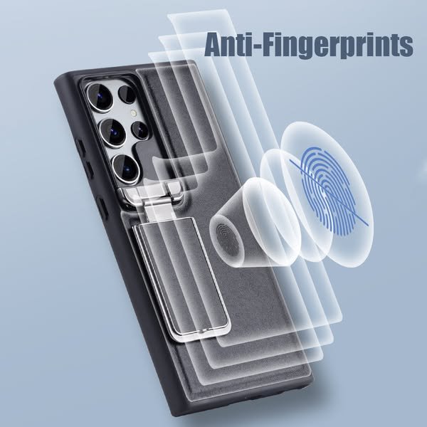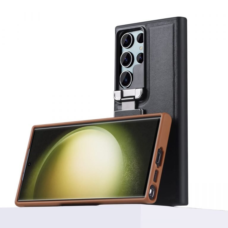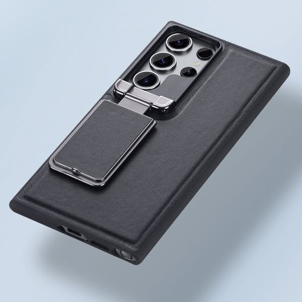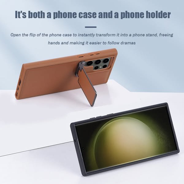 Samsung Galaxy S23/S24 Ultra, Genuine Leather Back Lens Protection Cover, Anti -Scratch and Protect Privacy Flip Aluminum Alloy Stand Slim Cover