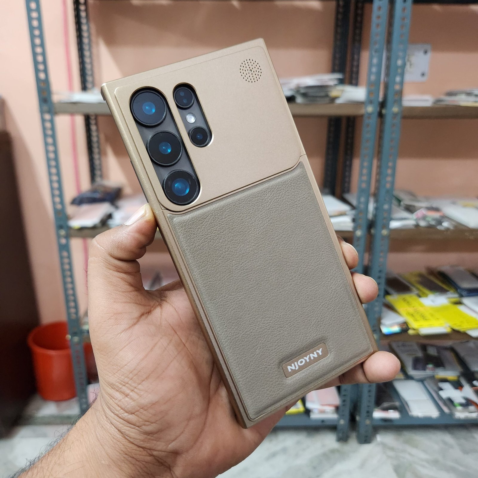 Samsung Galaxy S24/S25 Ultra Metal Case, Aero Flex Aluminum Metal + Leather Frameless Cover Magsafe